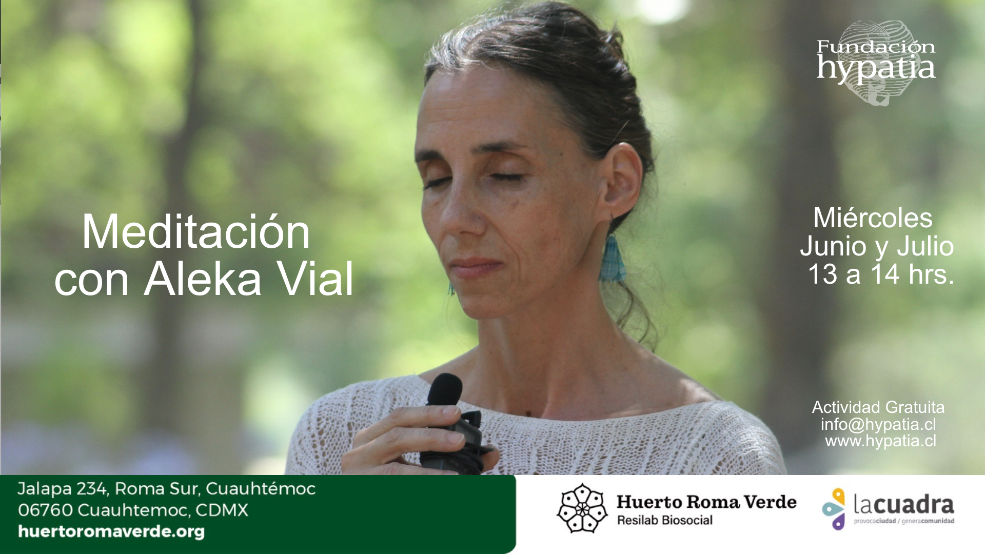 Entre el 20 de Marzo y el 31 de Julio del 2024 impartimos un ciclo de meditaciones gratuitas, todos los miércoles de 13:00 a 14:00 hrs, en la Bambudésica del “Huerto Roma Verde”. Una vez a la semana compartimos principios y prácticas para fortalecer la Inteligencia Espiritual y el desarrollo de la conciencia con agentes de cambio de este relevante laboratorio de resiliencia biosocial en el corazón de la Ciudad de México.